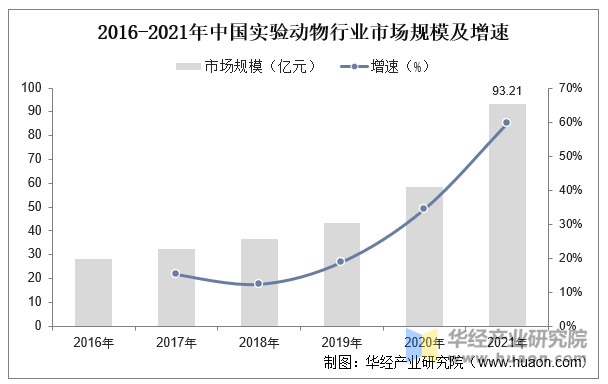 尝试动物是生物手艺行业财产链上逛的主要构成部门,正在生物医药行业的成长中阐扬庞大感化。2016-2021年,我国尝试动物行业市场规模连结高速增加,2021年市场规模达到93。21亿元,同比增加59。52%。