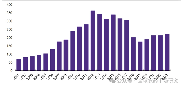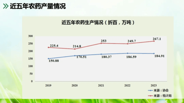 2014-2019 年,我国通过地盘、环保等政策办法严酷节制资本华侈、“三废”排放量大、污染严沉的农药新减产能,能耗高、手艺程度低、污染物处置难的农药产物的出产转移,加速掉队产能裁减。期间我国农药原药产量下滑,这是我国农药行业逃求高质量成长的成果。跟着满脚复产前提企业数量的添加和新产能逐渐,农药全体供应好转。受疫情影响,农药企业开工率不脚,农药供无限,叠加上逛原材料跌价,最终农药价钱大幅上涨带动农药市场进入高景气阶段。2023 年以来,跟着新冠疫情管控终结,市场预期经济强劲反弹,农药行业投资再次兴起,农药产物进入新一轮产能扩张,热点产物规划投建产能持续增加。按照监测,2021-2023前三季度国内农药行业新减产能杀虫剂 13。94万吨/年、杀菌剂 17。84万吨/年、除草剂 24。21万吨/年、两头体 113。5万吨/年以及制剂 53。64 万吨/年。投资最热品种包罗除草剂草铵膦(精草铵膦)、烯草酮;杀虫剂氯虫苯甲酰胺、啶虫脒和联苯菊酯;杀菌剂丙硫菌唑、吡唑醚菌酯。规模化产能集中导致阶段性供给过剩,企业合作激烈。